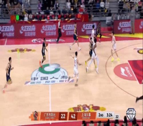 奎因也該換,因為兩場對陣上海的比賽,奎因都讓張鎮麟給打爆了,第二節期間,奎因還上演了一次快攻上籃不進和空籃三分不敢投、與杜潤旺互相甩鍋拒投三分的名場面,好好的一次快攻,因為這兩人不敢出手三分,球傳來傳去,最后還是張皓嘉背了鍋,此時廣東隊的三分球是13中3,大家手感都很鐵,都變得不敢出手了。